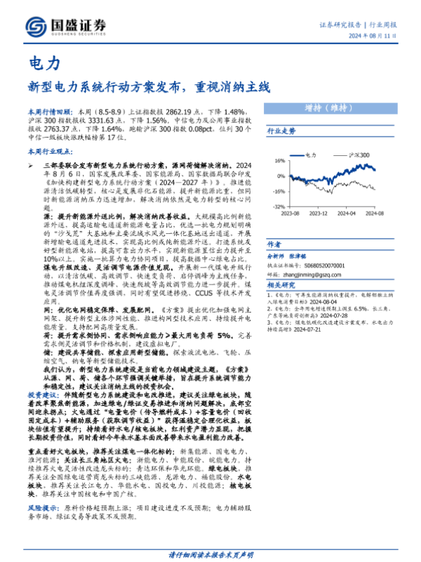 【国盛证券】【20240811】新型电力系统行动方案发布,重视消纳主线-16页 行业研究