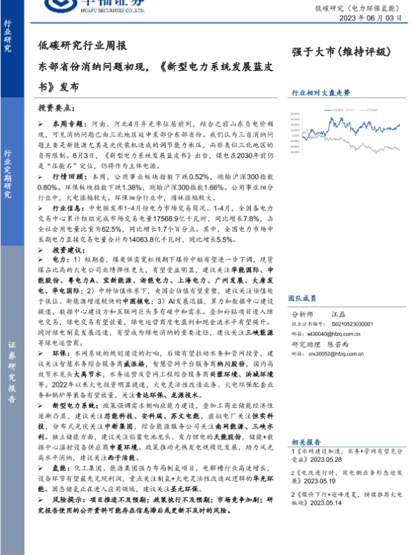 【华福证券】【20230603】20230603-华福证券-低碳研究行业周报:东部省份消纳问题初现,《新型电力系统发展蓝皮书》发布-17页 行业研究