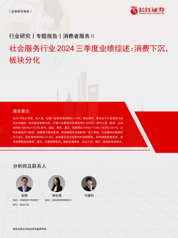 【长江证券】【20241111】社会服务行业2024三季度业绩综述:消费下沉,板块分化-30页 行业研究