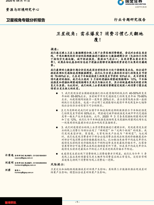【国金证券】【20200411】卫星视角:需求爆发?消费习惯已天翻地覆!-10页 行业研究