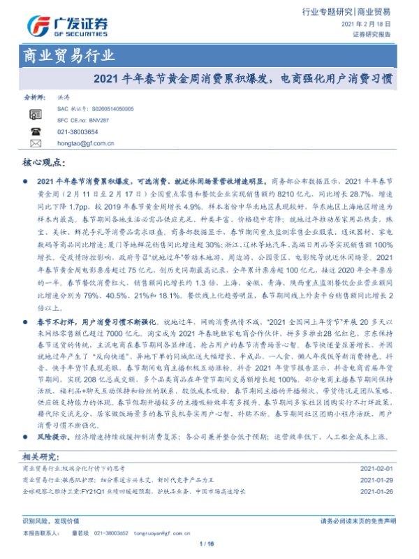 【广发证券】【20210218】2021牛年春节黄金周消费累积爆发,电商强化用户消费习惯-16页 行业研究