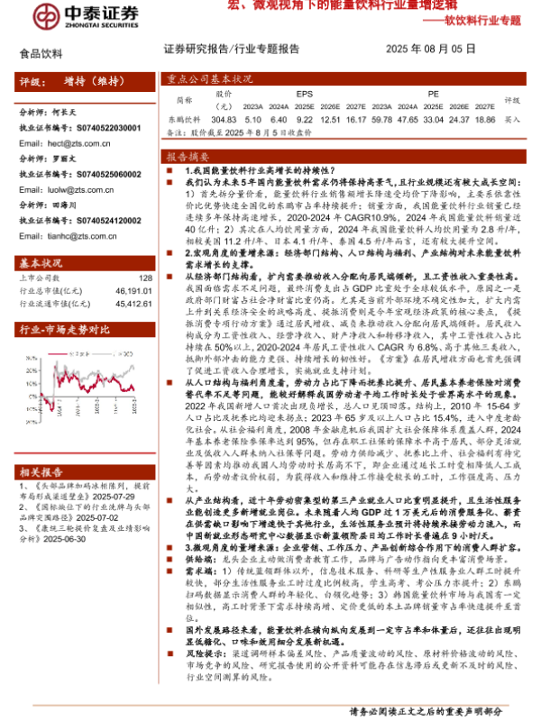 【中泰证券】【20250805】软饮料行业专题:宏、微观视角下的能量饮料行业量增逻辑-10页 行业研究