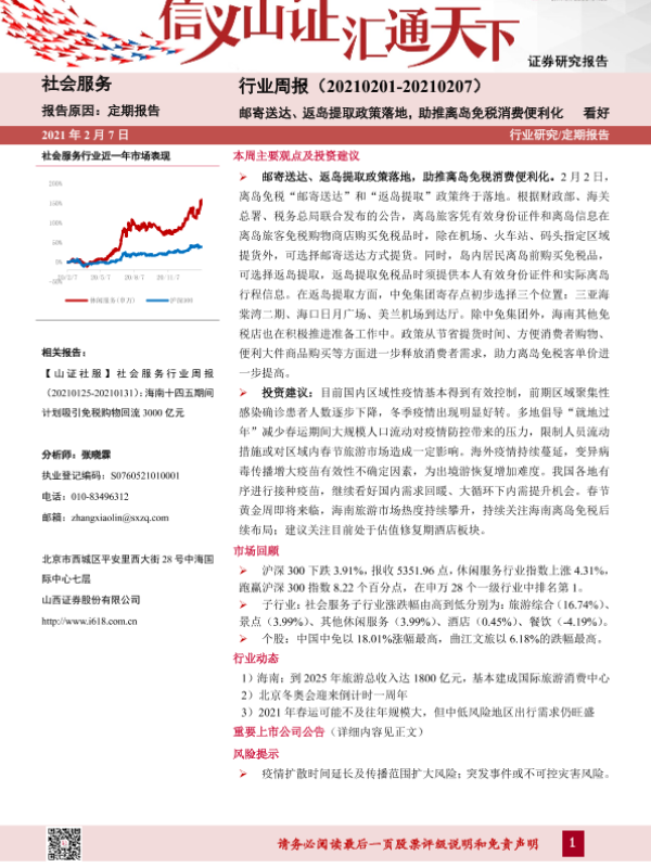 【山西证券】【20210207】社会服务行业周报:邮寄送达、返岛提取政策落地,助推离岛免税消费便利化-9页 行业研究