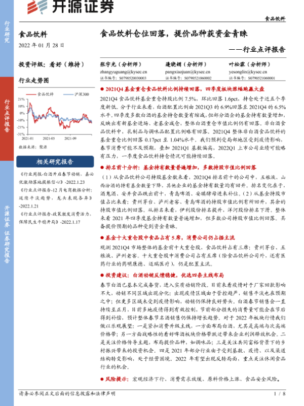 【开源证券】【20220128】食品饮料行业点评报告:食品饮料仓位回落,提价品种获资金青睐-8页 行业研究