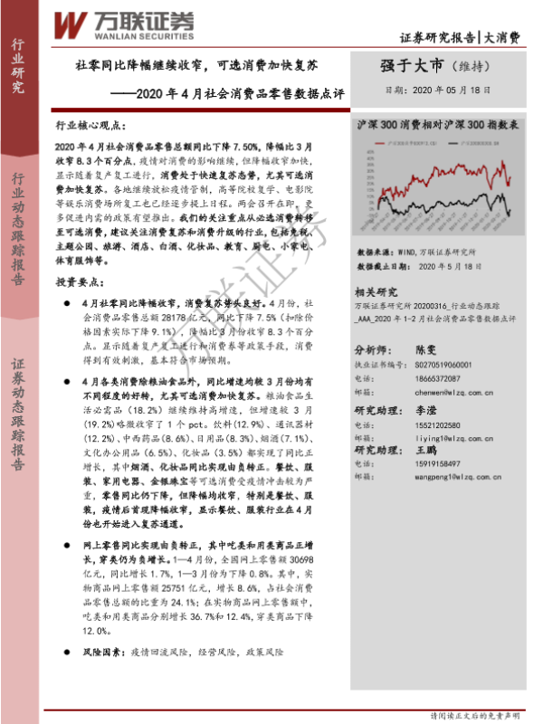 【万联证券】【20200518】2020年4月社会消费品零售数据点评-9页 行业研究