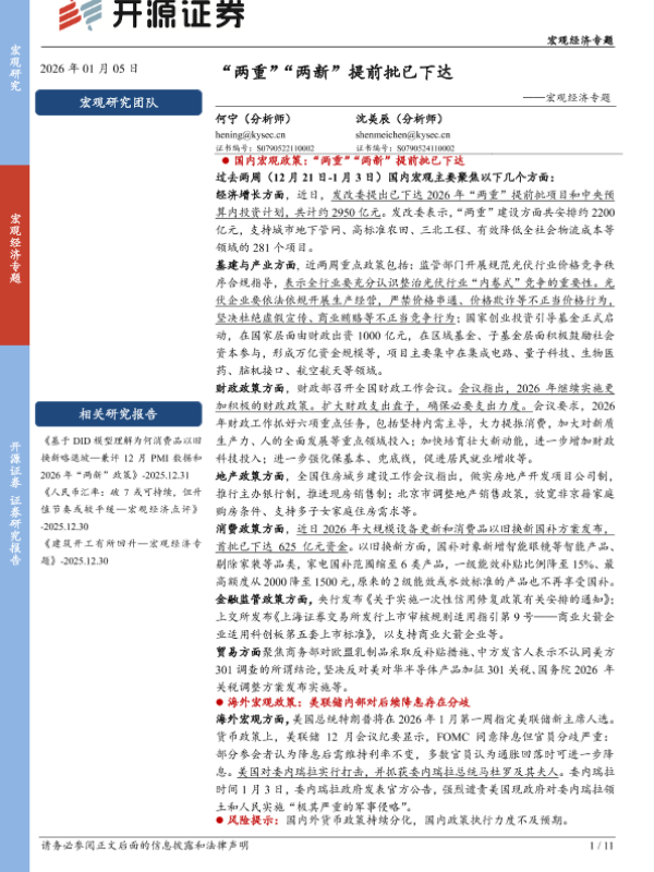 【开源证券】【202601】“两重”“两新”提前批已下达——宏观经济专题-11页 证券期货研究报告