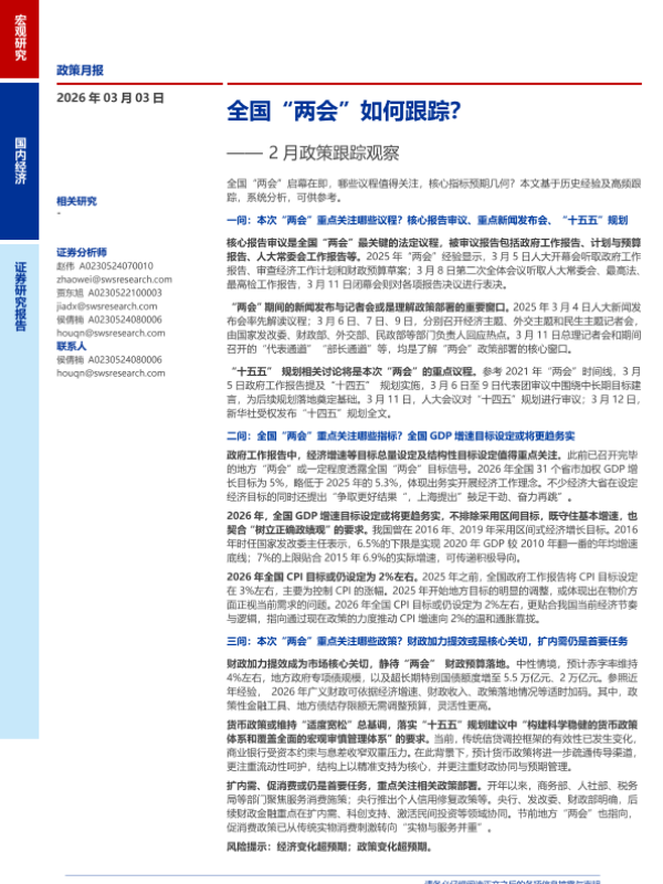 【申万宏源】【202603】全国“两会”如何跟踪?——2月政策跟踪观察-14页 证券期货研究报告