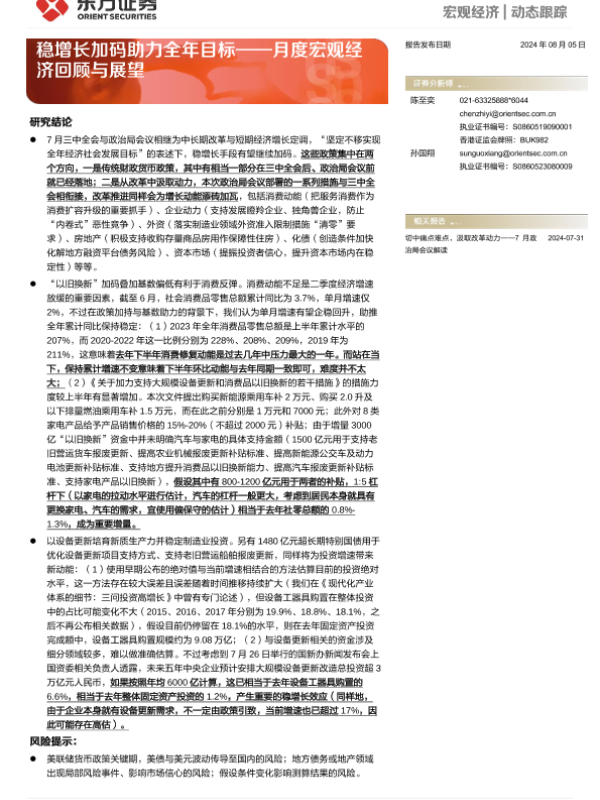 【东方证券】【20240805】月度宏观经济回顾与展望:稳增长加码助力全年目标-10页 行业研究
