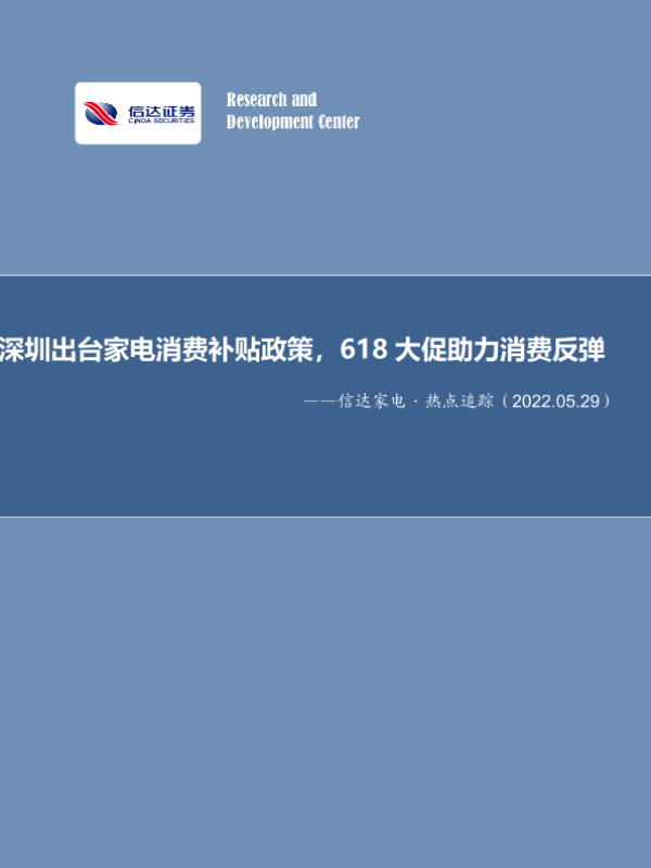 【信达证券】【20220529】信达家电·热点追踪:深圳出台家电消费补贴政策,618大促助力消费反弹-13页 行业研究