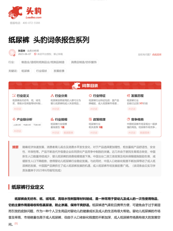 【头豹研究院】【20230911】纸尿裤 头豹词条报告系列-15页 行业研究