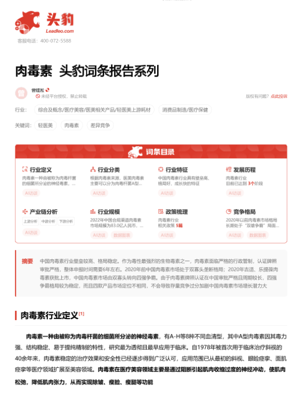 【头豹研究院】【20230814】肉毒素 头豹词条报告系列-16页 行业研究