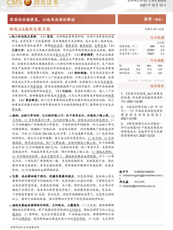 【海通证券】【20211212】消费品/轻工时尚行业周观点&造纸包装月报-14页 行业研究