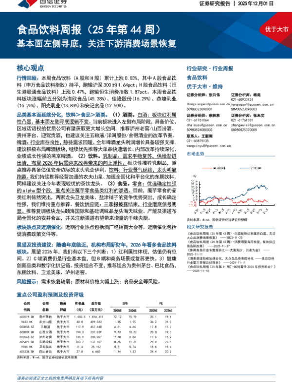【国信证券】【202512】优于大市 食品饮料周报(25年第 44周)-15页 证券期货研究报告
