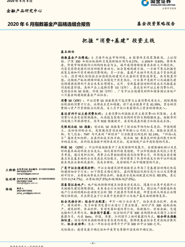 【国金证券】【20200608】2020年6月指数基金产品精选组合报告:把握“消费+基建”投资主线-24页 行业研究