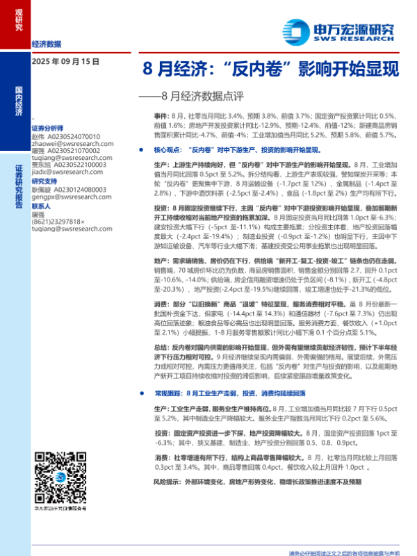 【申万宏源】【202509】8月经济:“反内卷”影响开始显现-10页 证券期货研究报告