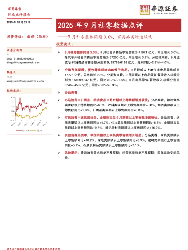 【华源证券】【202510】2025年9月社零数据点评——9月社零整体同增3.0%,家具品类增速较快-7页 证券期货研究报告
