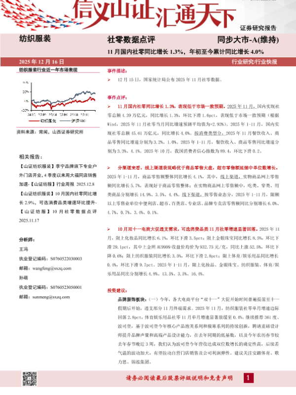 【山西证券】【202512】社零数据点评_11月国内社零同比增长1.3_年初至今累计同比增长4.0-6页 证券期货研究报告