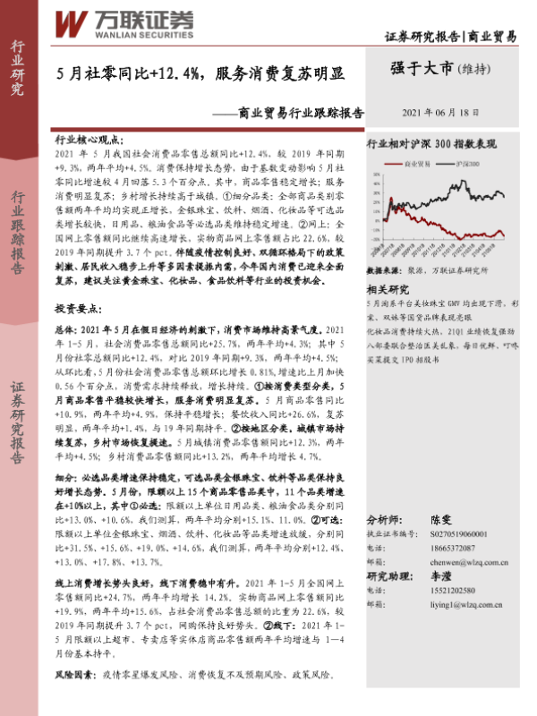 【万联证券】【20210618】5月社零同比+12.4%,服务消费复苏明显-7页 行业研究