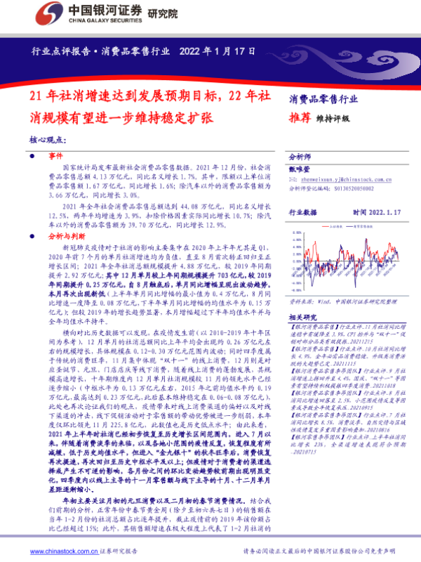 【银河证券】【20220117】21年社消增速达到发展预期目标,22年社消规模有望进一步维持稳定扩张-6页 行业研究