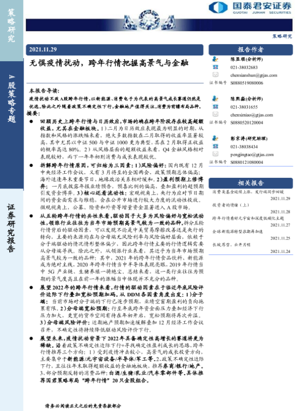 【国泰君安证券】【20211129】无惧疫情扰动,跨年行情把握高景气与金融-16页 行业研究
