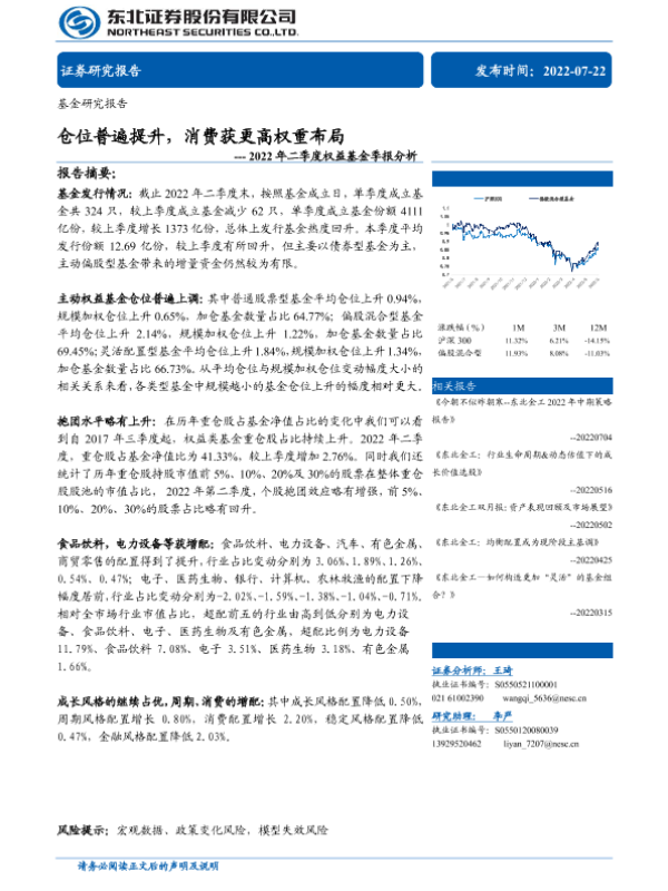 【东北证券】【20220722】2022年二季度权益基金季报分析:仓位普遍提升,消费获更高权重布局-23页 行业研究