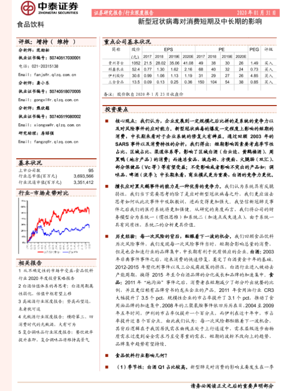 【中泰证券】【20200131】食品饮料行业深度报告:新型冠状病毒对消费短期及中长期的影响-22页 行业研究