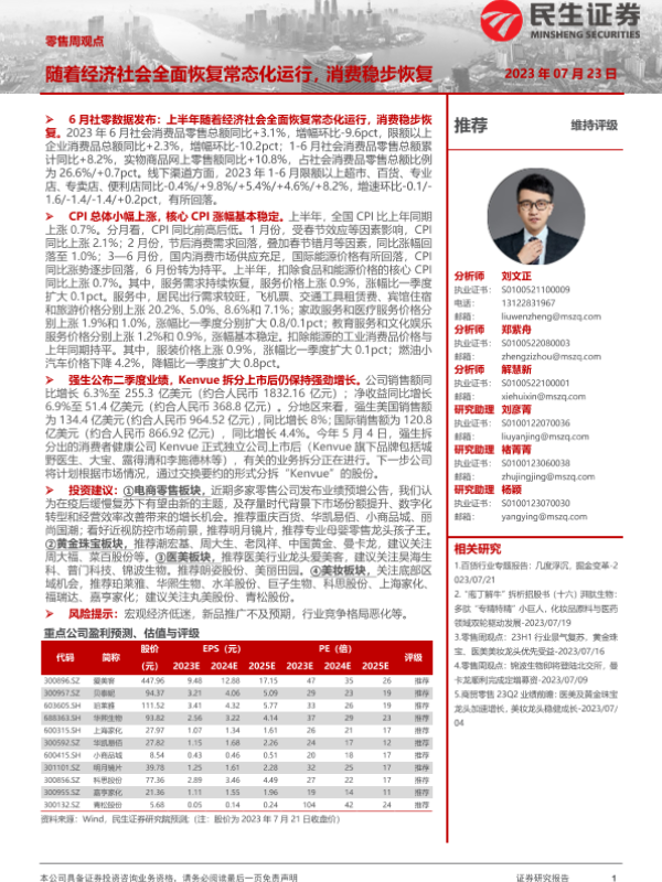 【民生证券】【20230723】零售周观点:随着经济社会全面恢复常态化运行,消费稳步恢复-18页 行业研究