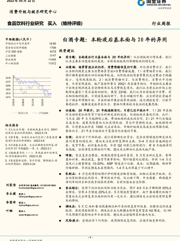 【国金证券】【20220522】20220522-国金证券-白酒专题:本轮疫后基本面与20年的异同-19页 行业研究