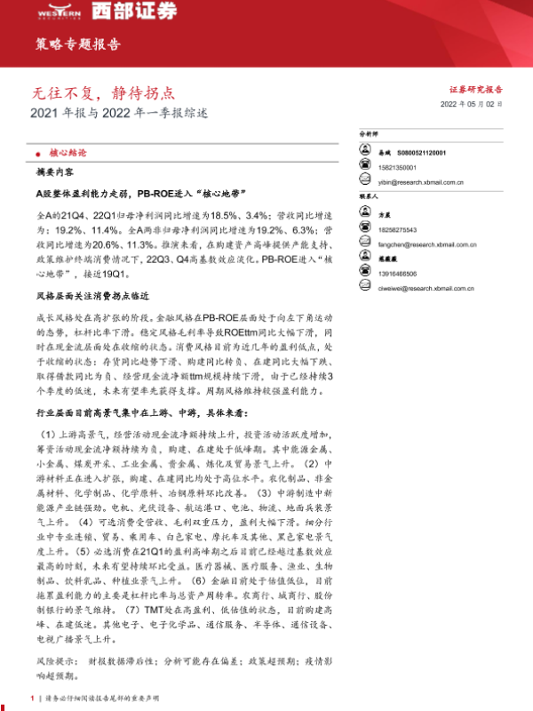【西部证券】【20220502】2021年报与2022年一季报综述:无往不复,静待拐点-37页 行业研究