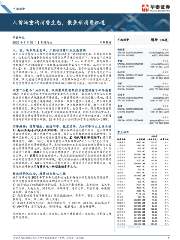 【华泰证券】【20250703】可选消费中期策略:人货场重构消费生态,聚焦新消费机遇-60页 证券期货研究报告