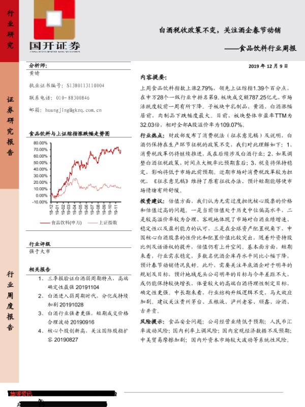 【国开证券】【20191209】20191209-国开证券-食品饮料行业周报:白酒税收政策不变,关注酒企春节动销-9页 行业研究