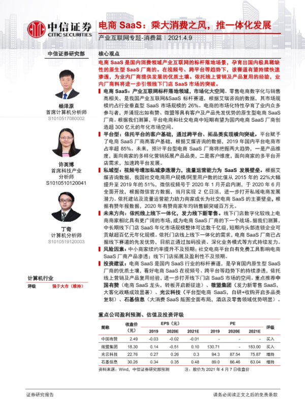 【中信证券】【20210409】电商SaaS:乘大消费之风,推一体化发展-32页 行业研究