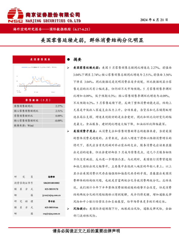 【南京证券】【20240621】美国零售延续走弱_群体消费结构分化明显-10页 宏观策略