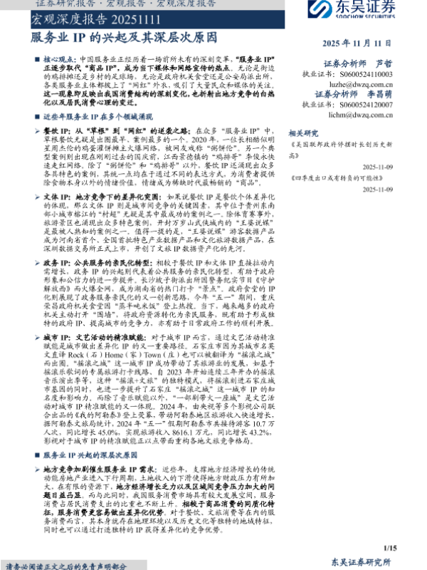 【东吴证券】【202511】服务业 IP的兴起及其深层次原因-15页 证券期货研究报告