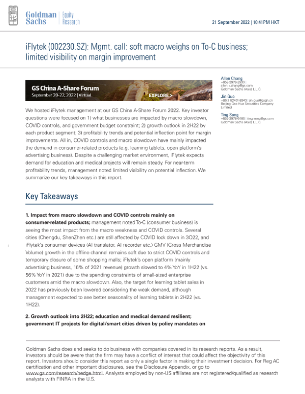 【Goldman Sachs】【20220921】t macro weighs on To-C business; limited visibility on margin improvement-9页 行业研究