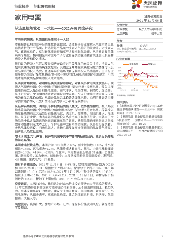 【天风证券】【20211108】家用电器行业2021W45周度研究:从流量视角看双十一大促-18页 行业研究