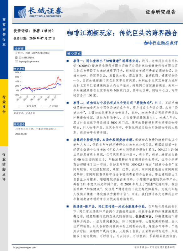【长城证券】【20200727】咖啡江湖新玩家:传统巨头的跨界融合-4页 行业研究