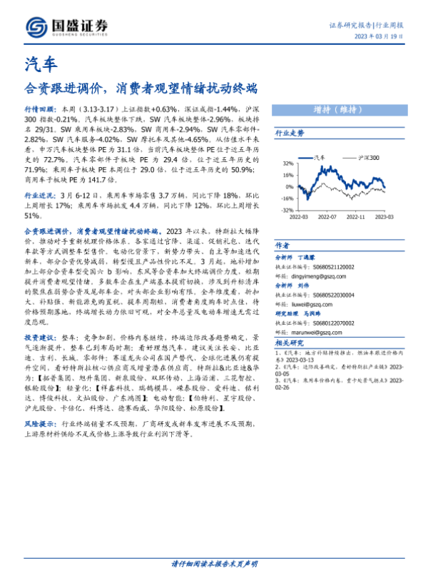 【国盛证券】【20230319】20230319-国盛证券-汽车行业周报:合资跟进调价,消费者观望情绪扰动终端-19页 行业研究