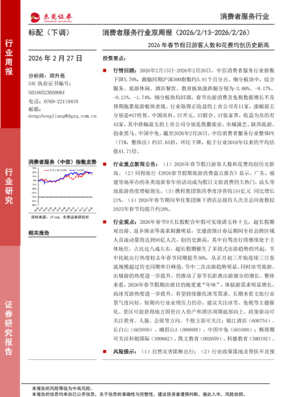 【东莞证券】【202602】消费者服务行业双周报(2026/2/13-2026/2/26)-10页 证券期货研究报告