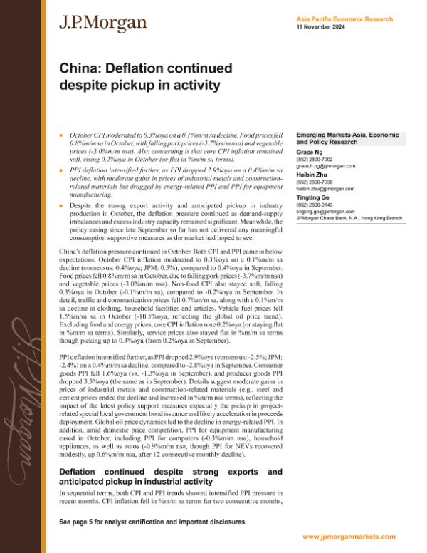 【J.P. Morgan】【20241111】China Deflation continued despite pickup in activity-9页 行业研究