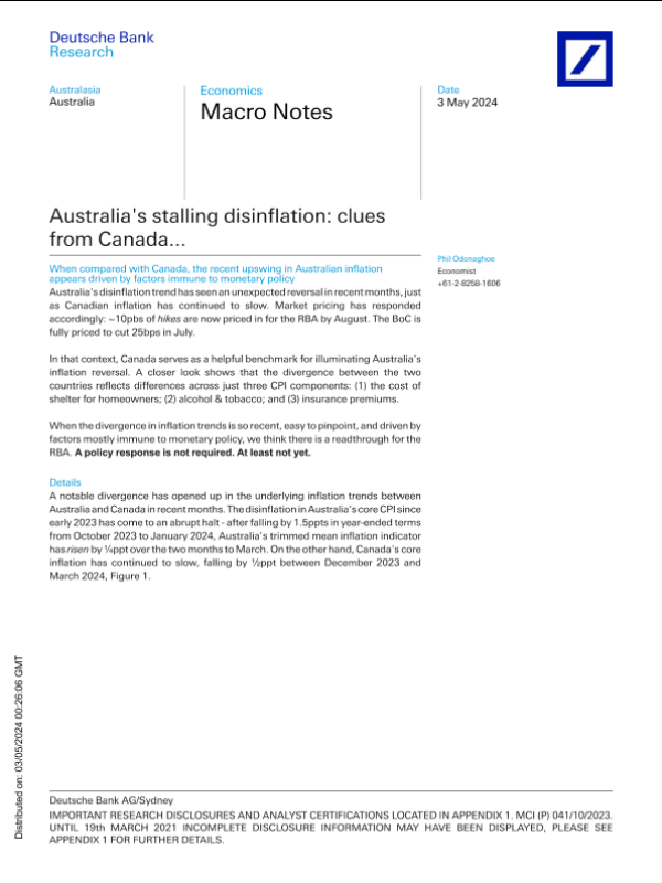 【Deutsche Bank Research】【20240503】澳大利亚停滞的通货紧缩:来自加拿大的线索-17页 行业研究