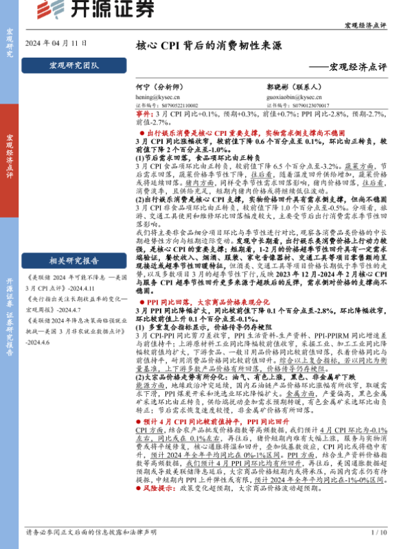 【开源证券】【20240411】核心CPI背后的消费韧性来源-10页 宏观策略