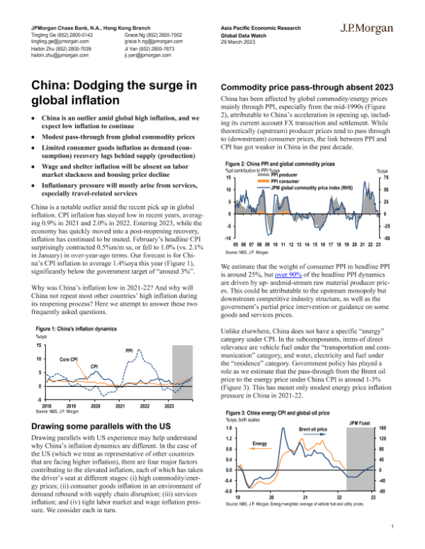 【J.P. Morgan】【20230329】中国在全球通胀上升中的表现-8页 行业研究