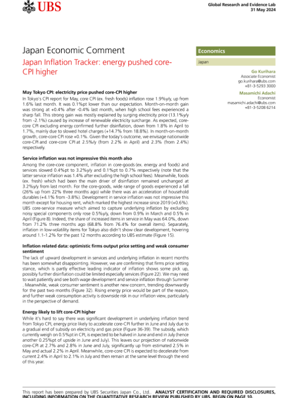 【UBS Securities Japan Co.&Ltd.】【20240531】Japan Inflation Tracker energy pushed core-CPI higher-14页 行业研究