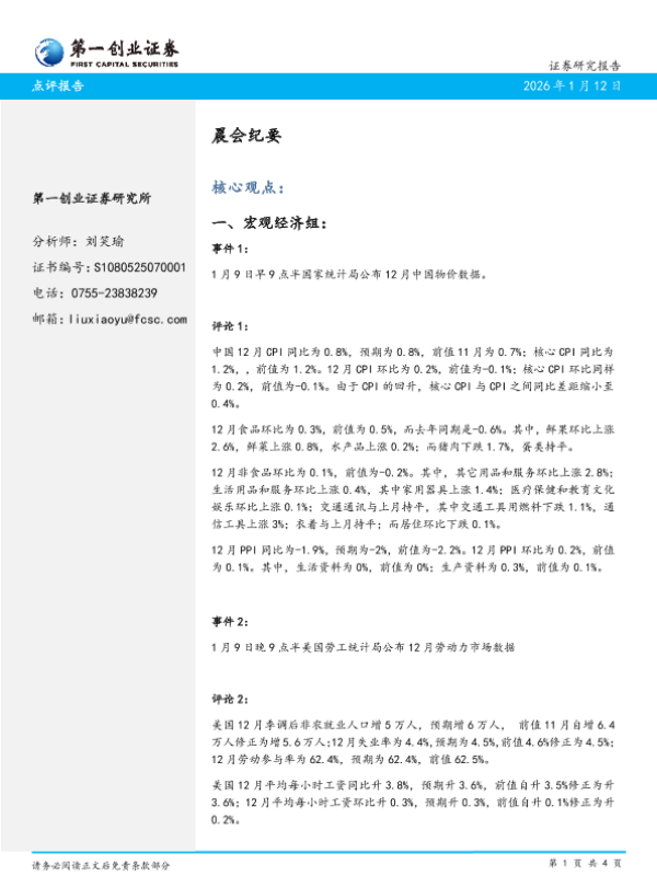 【第一创业证券】【202601】晨会纪要-4页 会议纪要