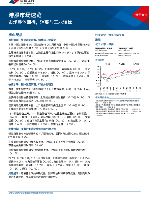 【国信证券】【202602】港股市场速览:市场整体回撤,消费与工业较优-16页 证券期货研究报告