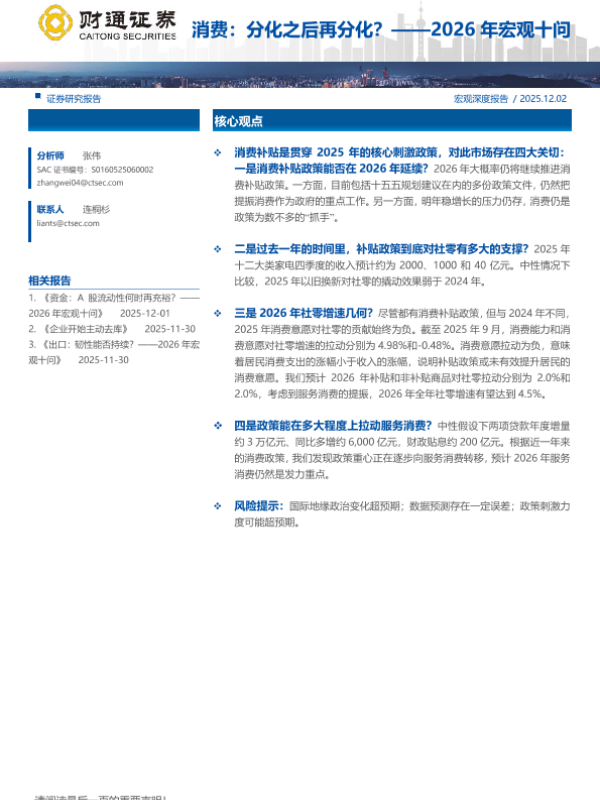 【财通证券】【202512】2026年宏观十问_消费_分化之后再分化-16页 证券期货研究报告