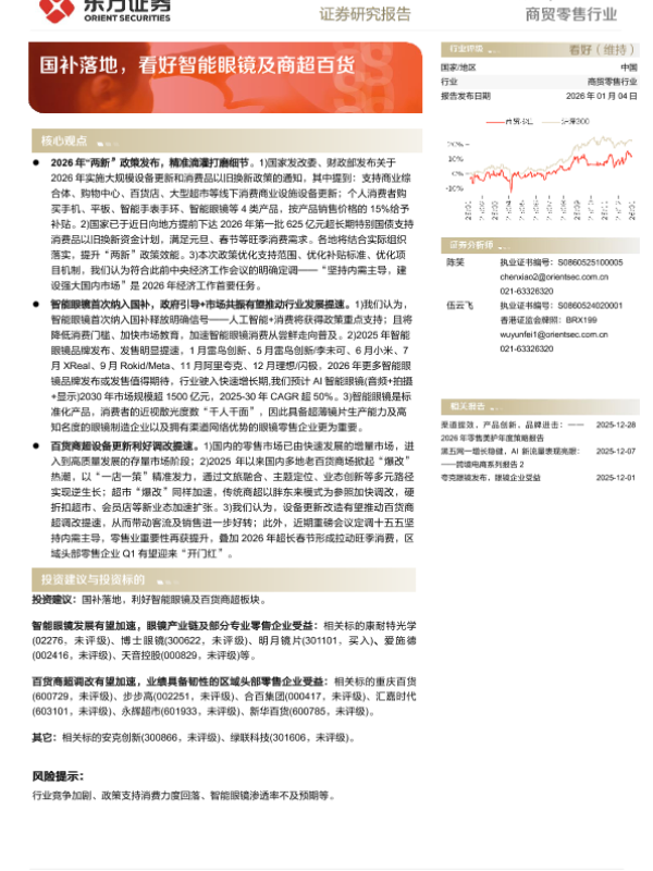 【东方证券】【202601】商贸零售行业动态跟踪——国补落地,看好智能眼镜及商超百货-3页 证券期货研究报告