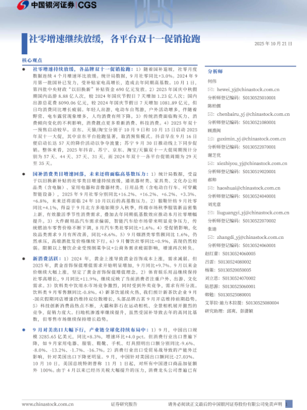 【银河证券】【202510】社零增速继续放缓,各平台双十一促销抢跑-15页 证券期货研究报告