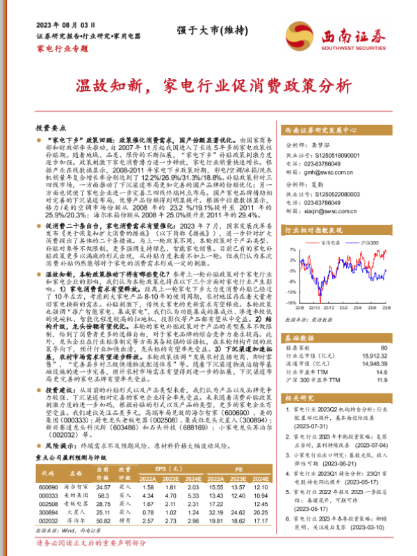 【西南证券】【20230803】20230803-西南证券-家电行业专题:温故知新,家电行业促消费政策分析-21页 行业研究